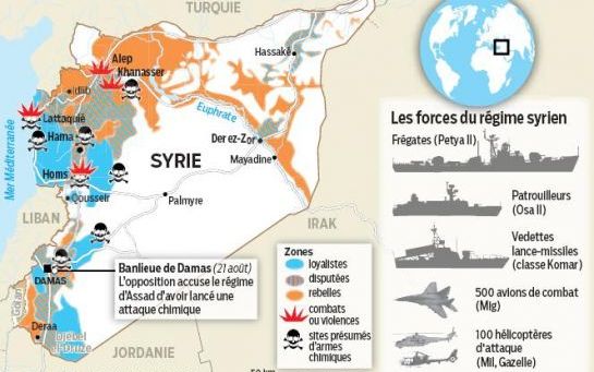 Près d'une semaine après le massacre de Damas, supposé chimique, qui a causé la mort de plus de 1 300 personnes, selon l'opposition, la communauté internationale ne cesse de multiplier les déclarations en ce sens. Les Etats-Unis sont catégoriques : «Des armes chimiques ont été utilisées en Syrie». Du côté français, François Hollande s'est entretenu ce mardi avec son ministre des Affaires étrangères et va effectuer un discours devant tous les ambassadeurs français à 17 heures pour envisager une intervention occidentale en Syrie. Pour le chef de la diplomatie française, Laurent Fabius, les pays occidentaux décideront d'une réaction «dans les jours qui viennent». Source : http://www.leparisien.fr |