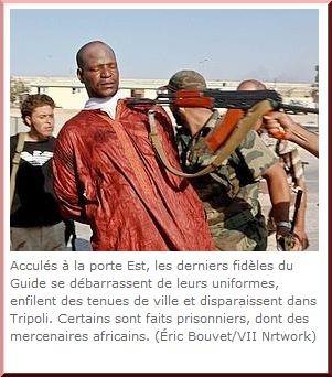 Au contraire des “rebelles” de Benghazi, connus pour leur racisme anti-Noirs et qui se sont rendus coupables d’atrocités épouvantables et systématiques dès les premiers jours de guerre. Le paradoxe, c’est que l’Otan prétend apporter la démocratie et qu’il s’allie à une section libyenne d’al Qaeda et à des racistes du type Ku Klux Klan !" ![]()