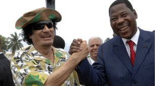 Un président comme le Burkinabè Blaise Compaoré a toujours bénéficié des largesses du Guide, que ce soit pour ses besoins personnels ou pour le développement de son pays. En témoigne la statue montrant le Guide accompagné du « beau Blaise », qui décore une place de Bobo-Dioulasso au Burkina Faso. Concilier business et politique Plus sérieusement, le projet Ouaga 2000, sorte de ville nouvelle en périphérie de la capitale Ouagadougou, n’a vu le jour que grâce à des investissements libyens —de même que toute une série de projets comme la route du Guide, la clinique Suka ou encore l’hôtel Libya. Ouagadougou est devenue l’arrière-cour privilégiée du Colonel, en dépit de relations parfois houleuses avec Blaise Compaoré.