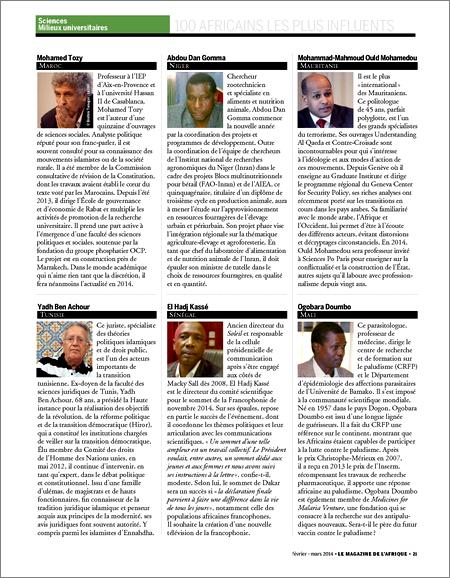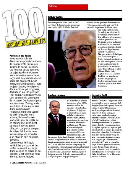 On l’attendait toutefois avec impatience en raison des efforts jugés d’utilité publique, que cet infatigable travailleur n’a cessé d’investir pour donner à Cridem la renommée qu’on lui connait aujourd’hui et qui, quelque part, consacre l’image démocratique dont jouit la Mauritanie dans des milieux particulièrement exigeants en la matière et où la liberté d’expression ne peut souffrir d’aucun fourvoiement. On l’attendait d’abord de la Mauritanie, de l’élite, de l’Etat, des lecteurs du site, des francophones, de la HAPA et des simples citoyens qui avaient mille et une manières de pouvoir l’exprimer. On attendait, que cet homme, qui a su aimer notre pays à qui il est en train de donner le meilleur de lui-même, puisse d’abord mesurer la portée de son œuvre à travers notre reconnaissance,... ...puis peut-être à travers d’autres témoignages qui, contrairement à nous, ne la jugent que sous un angle purement éthique. On attendait également de nos annonceurs, de nos capitaines d’industries, de nos entreprises et de nos hommes d’affaires, de manifester eux aussi cette reconnaissance à travers un partenariat avec Cridem dont la renommée a, depuis belle lurette, traversé les frontières du pays permettant aux étrangers de savoir qu’on existe sur d’autres plans outre que géographique. Cette reconnaissance, qui devait s’exprimer en termes de solidarité, n’est jamais venue. Bien au contraire car, Claude K s’est retrouvé plusieurs fois devant le procureur de la république pour avoir rapporté qu’un journal de la place a dit qu’un chat blanc est, en effet, un chat blanc. S’il s’en est toujours sorti en y laissant quand même quelques plumes, les entités à l’origine des procès, qui ressemblent à s’y méprendre à une inquisition aux relents de xénophobie, n’ont jamais daigné présenter des excuses à cet homme, ni faire amende honorable après qu’ils aient compris l’utilité de son travail pour la stabilité du pays et, par conséquent, pour leurs affaires. Mais tout cela n’a plus d’importance désormais. Maintenant que la consécration méritée est venue, peu importe qu’elle soit d’ici ou d’ailleurs. L’essentiel c’est queCridem, et à travers lui la Mauritanie, est honoré et ses efforts reconnus dans l’intérêt qu’ils apportent à la transformation de l’Afrique. En effet, dans sa livraison N° 5 du mois de février 2014, New African, Le Magazine de l’Afrique, une des 9 publications du groupe IC Publication, présente sa sélection des ‘’100 africains influents’’. On y retrouve Claude K au milieu de personnalités comme l’Algérien Lakhdar Ibrahimi, négociateur desNations Unies pour la Syrie, Mohammad-Mohamedou Ould Mohamedou, le plus "international" des mauritaniens et le chef du parti islamiste modéré Ennahda, Rached Ghannouchi qualifié de métronome de la transition Tunisienne. On y retrouve aussi les marocains Moulaye Hafid Elalamy, patron du groupeSahan et ministre de l’Industrie et des Nouvelles technologies de son pays depuis octobre 2013 et Oumar Azziman conseiller du roi Mohamed VI. A coté de ces deux personnalités trônent le Burkinabé Arsène Begnossan Yé le fameux ‘’ministre de l’article 37’’ et le Congolais (Brazzaville) André Okombi Salissaqualifié de ‘’Flatteur du Macky Sall du Congo’’ par Hichem Benaich rédacteur en chef de New African. On y retrouve également la fille d’Ahmadou Ahidjo, Aminetou, pressentie comme futur Premier Ministre du Cameroun, Moise Katumbi, gouverneur de la province du Katanga en RDC, la présidente de la CPI, Fatou Bensouda et Nzazi Okonjo Iweala, ministre Nigérian des Finances. Et, parmi d’autres personnalités, non moins célèbres, figurent à ce tableau le président de la BAD Donald Kaberuka, le Secrétaire Général de la CEA Carlos Lopes et Pierre Fakhoury l’architecte de Yamoussokoro. Si les mérites de Claude ont été reconnus ailleurs plutôt que chez nous, il n’est cependant jamais trop tard pour bien faire. En d’autres termes, remettre les pendules du mérite à l’heure des œuvres utiles pour la collectivité nationale. Cridem est là, présent dans notre vie nationale quotidienne et Claude K, toujours égal à lui-même et sans prétentions outre celles de rester à la hauteur des ambitions qu’il nourrit pour son site, est là aussi parmi nous. Et les deux se confondent dans une entreprise dédiée à la liberté d’expression et à l’enracinement de la culture démocratique que les mauritaniens doivent méditer à défaut de se sentir l’obligation de la soutenir ne serait-ce que moralement. M.S.Beheite